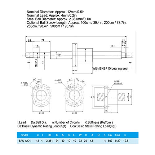 YWBL-WH Kit viti a ricircolo di sfere 1204 Cuscinetti a ricircolo di sfere con accoppiamento portadadi BK BF Supporto terminale(1204-500), Guide Lineari
