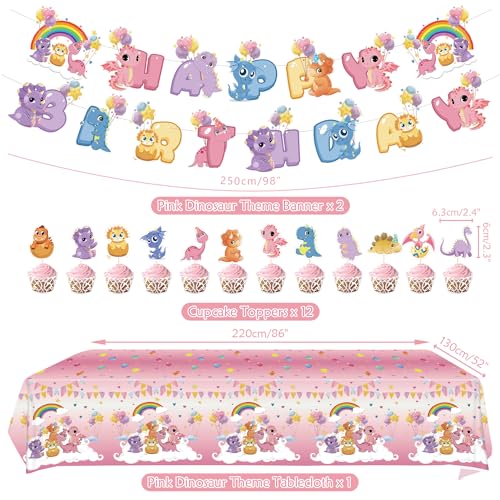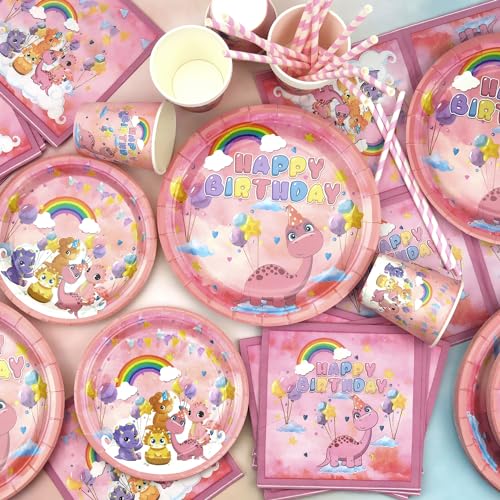 FESTA A TEMA SPECIALE: Preparare i compleanni dei bambini è un lavoro davvero stressante e felice, rendi la festa di compleanno a tema dinosauro della tua bambina ancora più speciale con il nostro set di accessori per feste di dinosauri, la combinazione di colori rosa aggiunge un tocco delizioso al tema dei dinosauri.