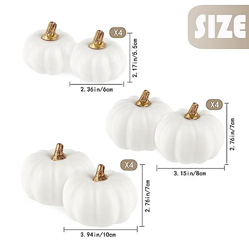 Ywlake Zucche artificiali, 12 pezzi di dimensioni assortite, bianche, raccolte realistiche, zucche finte in schiuma, set per autunno, autunno, Halloween, festa, Ringraziamento, decorazione per le