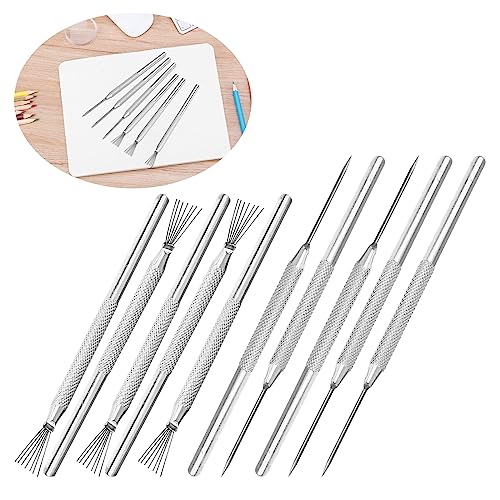 YWNYT 10 pezzi di argilla ceramica scultura piuma filo texture + Pro ago, argilla ceramica scultura ago, strumenti di dettaglio ago, strumenti per argilla, strumenti di modellazione texturing