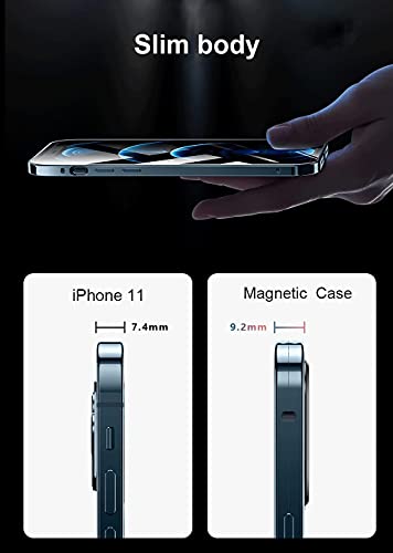 YwuLy 360 Gradi Cover Compatibile con iPhone 11 Magnetica Custodia, Antiurto Metallo Paraurti Cover, [Camera Protection] Clear Vetro Temperato Flip case, Per iPhone 11 6.1" Trasparente, Verde Notte
