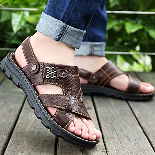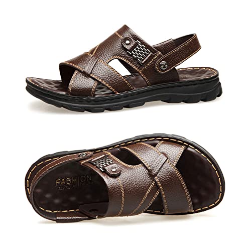 YWZBEC Sandali Con Cinturino Alla Caviglia Da Uomo, Sandali Con Punta Aperta In Pelle da Uomo, Scarpe Per L'Estate In Spiaggia Brown 40