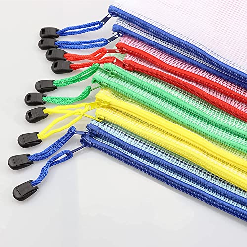 YXHZVON 12 Pezzi Borse di File A6, Sacchetto di Zip Impermeabile Mesh, Sacchetti di Rete per Documenti con Cerniera, Busta Plastica con Cerniera per Ricevute, Materiale Scolastico(Colore)