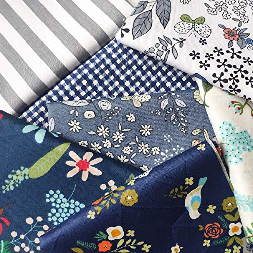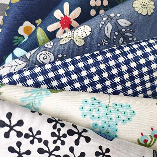 YXJDWEI Tessuto Stampato in Cotone DIY Tessuto Cotone Tessuto Quadrati di Cotone Tessuti Stampati da Cucito Stoffa Patchwork Floreale per Cucire (Blu)