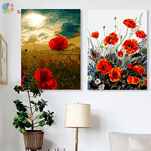 YXQSED [Cornice di Legno Dipingere con i Numeri per Adulti e Bambini Vernice di Numero Kit Papaveri 16 * 20 inch