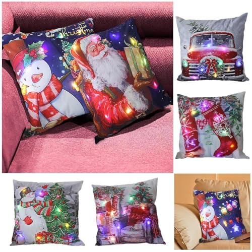 YXRRVING Federa per cuscino a LED con alce di Babbo Natale, decorazione luminosa di Babbo Natale, decorazione natalizia W2J2