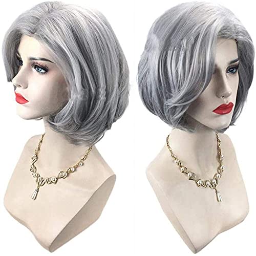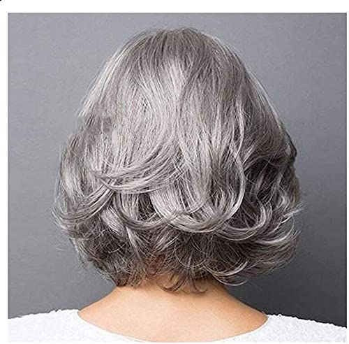 YXSHZ Parrucche sintetiche per capelli corti Bob separazione laterale grigio argento parrucca ondulata corta per capelli da donna parrucche piene resistenti al calore (grigio argento)