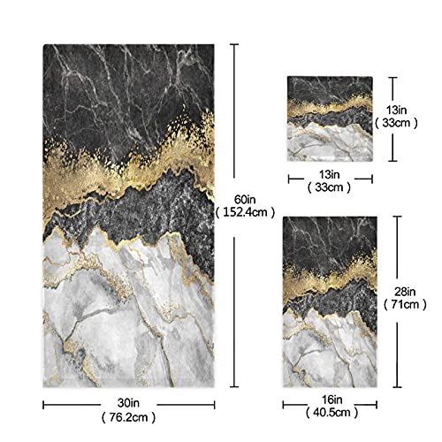 YYDSL - Set di 3 asciugamani astratti in marmo nero, bianco, 1 asciugamano da bagno, 1 asciugamano da mano, 1 panno per la doccia, colore grigio oro, assorbente, morbido, per palestra, spa, cucina,