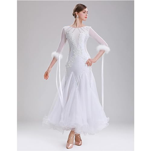 YYDSY Abiti da Ballo Professionale da Sala da Donna Abito da Ballo Standard Nazionale di Valzer Tango Costume da Gara di Salsa Scollo Tondo Abbigliamento da Ballo per Spettacoli di Flamenco,Bianca,L