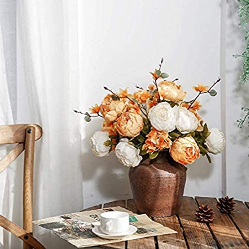 YYHMKB Fiori artificiali, fiori di peonia artificiale vintage, fiori finti Composizioni di fiori finti per la decorazione domestica di nozze-1 confezione bianco arancione
