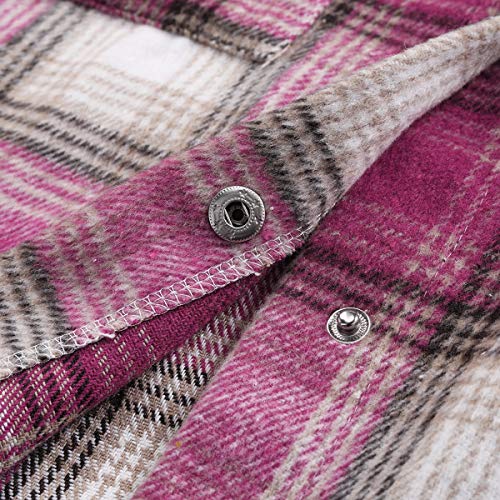 YYNUDA Camicie da donna in flanella scozzese con bottoni e bottoni, giacca classica vintage Boyfeiend a quadri, Rosso, 38