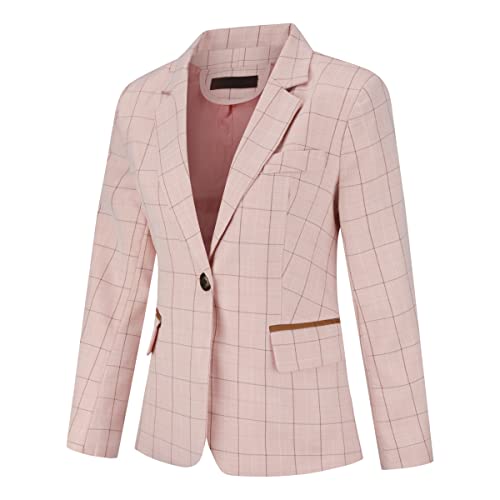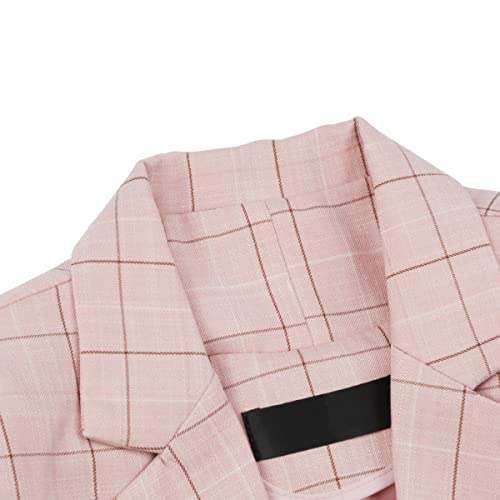 YYNUDA Set completo da donna blazer con pantaloni, slim fit, a quadretti, in tessuto sottile, elegante, business, Colore: rosa., XS