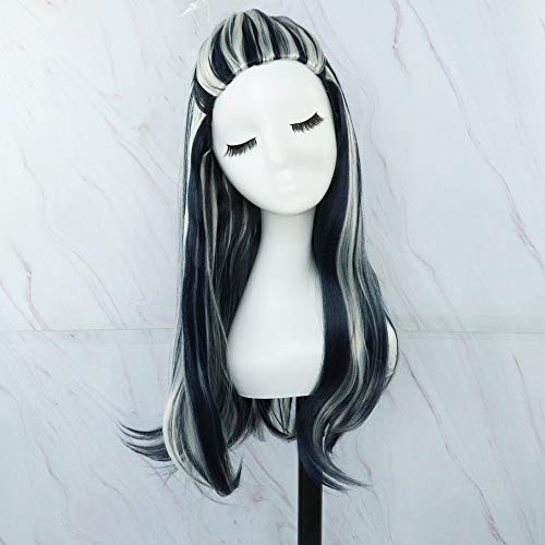 ✔ La parrucca lunga in bianco e nero è realizzata in 100% fibra ad alta temperatura, può essere calda e riccia, ma non può essere tinta