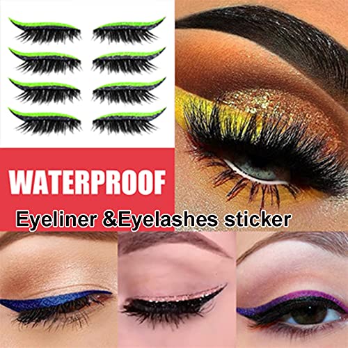YZDKJ 4 Paia 2 in 1 Eyeliner e Adesivi per Ciglia e Ciglia riutilizzabili Impermeabile Adesivi autoadesivi autoadesivi per Eyeliner Strumenti di Trucco (Color: Fluorescent Green)