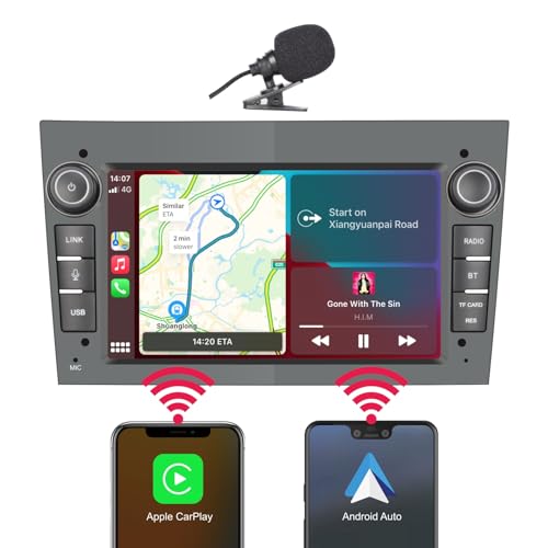 YZKONG Autoradio per OPEL Antara Corsa Vivaro Zafira con wireless Carplay Android Auto, ricevitore per auto a doppio din Screen telecamera posteriore AHD, radio RDS, Bluetooth, USB Colore grigio