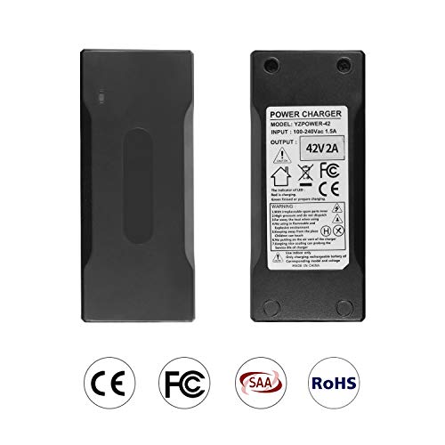 Ha una lunga durata: caricabatterie da 42 V 2 A con protezione da cortocircuito, sovratensione, protezione da sovracorrente, riduce efficacemente gli effetti dell'ingresso AC, qualifica completamente carica ed evita il sovraccarico e si prende cura della vostra attrezzatura di ricarica.