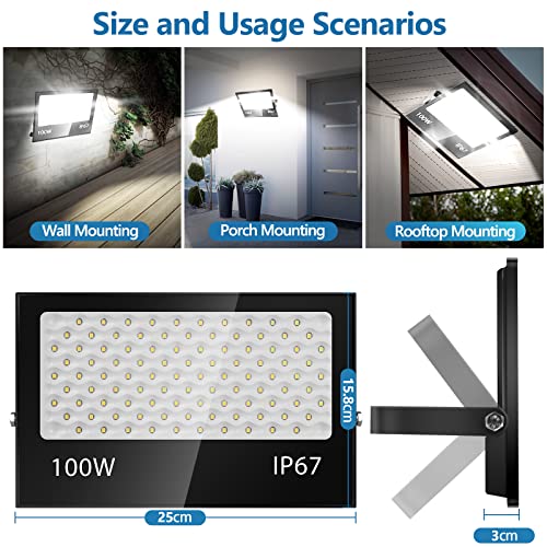 【Angolo del fascio di 120° e impermeabilità IP67】 Il proiettore a LED per esterni soddisfa lo standard IP67 ed è stato testato per la resistenza all'acqua. Fornisce un angolo del fascio ampio di 120° e un'ampia area di illuminazione senza ombra e abbagliamento per una migliore protezione degli occhi e può essere utilizzato all'interno, all'esterno e in altre situazioni.