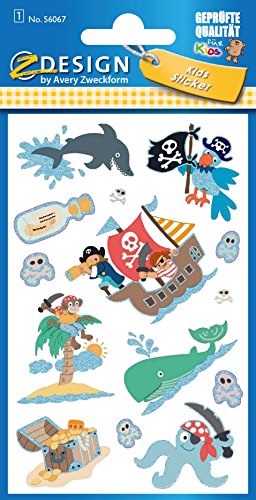 Z-Design 56067 bambini adesivi (pirata, Glitter schermo) 14 adesivi, 14 Pezzi