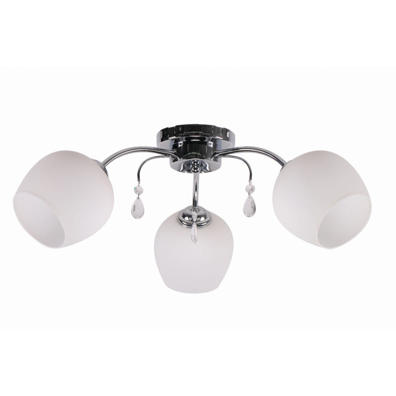 Materiale: base in acciaio, paralume in vetro Colore base: cromo Altezza: 21 Larghezza: 56 Profondità: 56 Dimensioni (altezza/larghezza/profondità): 21x56x56 Peso (netto): 0,77 LED integrato: No Numero di sorgenti luminose: 3 Sorgente luminosa inclusa: No Numero di sorgenti x presa: 3xE27