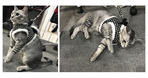 Zackx Dog no Pull imbracatura con guinzaglio, imbracatura interna in morbido pile caldo, imbracatura regolabile con chiusura in velcro, imbracatura a rilascio rapido in plaid rosso + nero