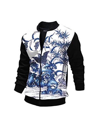 Zacoo Uomo Giacca di Baseball del Blu e bianco Stampato