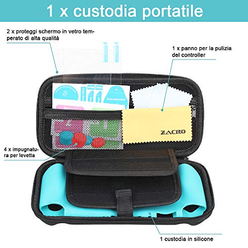 Zacro kit Custodia per Nintendo Switch Lite, Include 2 Protezioni per Schermo HD, Cavo di Ricarica USB-C, 2 Coppie di Tappi a Bilanciere con Impugnatura e Panno per La Pulizia