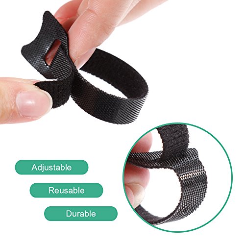 Zacro fissaggio fascette, 100 pezzi riutilizzabili fascette Wrap strap, gestione dei cavi sottili con gancio e fascette di colore nero con 1,3 x 15,2 cm lungo