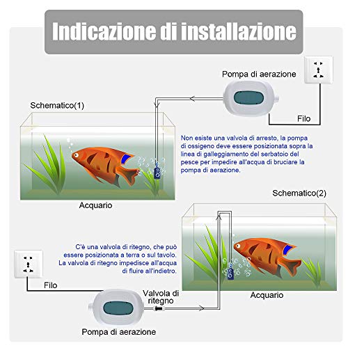 5 【Materiale Robusto】Pompa per acquario dell'aria dell' ha un guscio in plastica ASB, resistente alle cadute, piccolo e leggero, bello nell'aspetto, semplice e pratico nel design, salvaspazio e molto facile da installare e utilizzare.