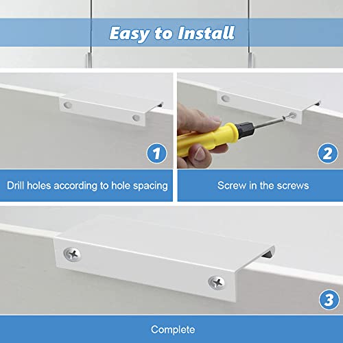 【Viti autofilettanti e facile installazione】Ogni maniglia a scomparsa finger edge è dotata di 2 viti autofilettanti, che possono essere facilmente installate con un cacciavite per pannelli sottili, e i fori preforati possono mantenere la bellezza e l'integrità della superficie del mobile.