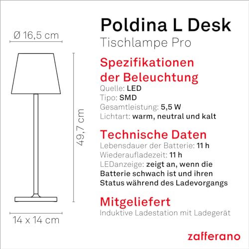 BATTERIA RICARICABILE E SOSTITUIBILE: Ricaricare la lampada Poldina L è molto semplice, basta appoggiarla sulla base di ricarica a contatto. La durata della batteria è di almeno 11 ore, il tempo di ricarica a 1A è di 11 ore