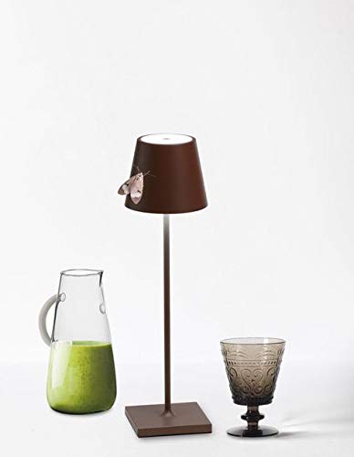 Zafferano Poldina Lampada LED Ricaricabile da Tavolo, Regolabile, Corpo in Alluminio, Protezione IP54, Adatto per Uso Esterno/Interno, Spina EU 2.2 W, Corten, 38 cm