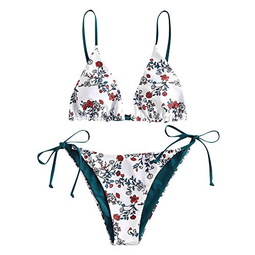 ZAFUL Costume da bagno da donna a triangolo Tie String, Verde scuro-3., L