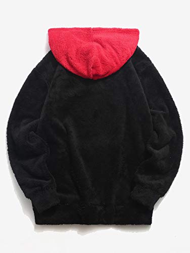 ZAFUL Felpa con cappuccio da uomo Fuzzy, con tasca in peluche, a maniche lunghe, in pile, per autunno e inverno, Nero, S