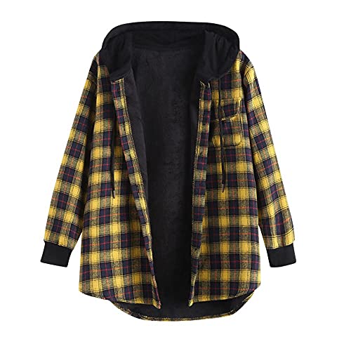 ZAFUL Giacca da donna con cappuccio e bottoni automatici imbottiti, giallo., XXL
