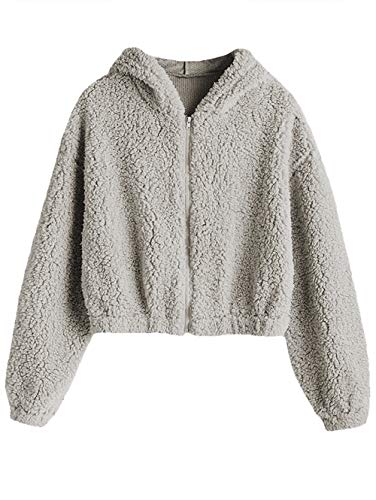 ZAFUL Giacca Donna Casual Cappotto con Cappuccio da Donna con Cerniera in Tinta Unita Hoodie (M, Grigio Chiaro)