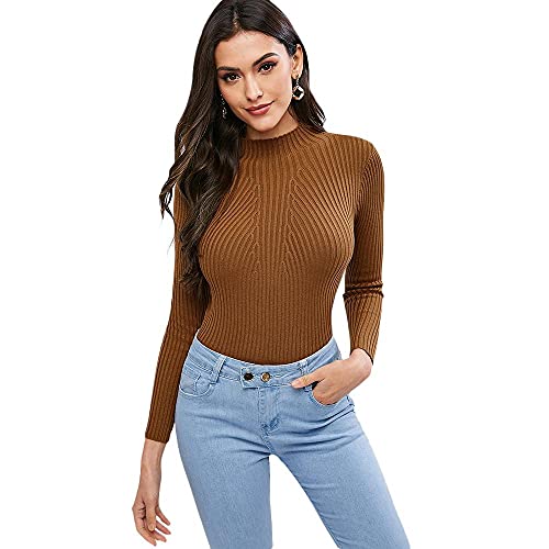 ZAFUL Maglione da donna, a maniche lunghe, in cotone, marrone, S