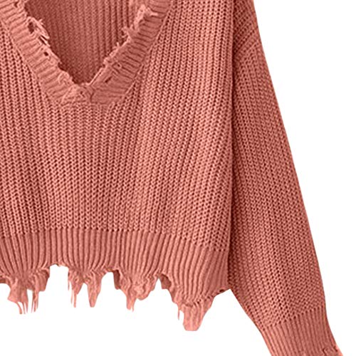 ZAFUL Maglione Donna con Scollo a V Pullover Tops Casual Invernale Manica Lunga Lavorato a Maglia (Rosa Arancione)