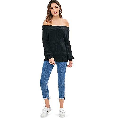ZAFUL Maglione con Scollo a Barca Maniche Lunghe Pipistrello Pullover Tinta Unita One Size per Donna (Nero)