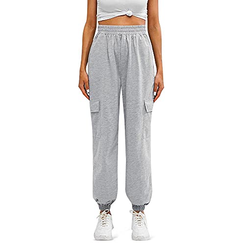ZAFUL Pantaloni da jogging da donna, in cotone, invernali, da jogging, da donna, a vita alta, per il tempo libero, grigio., L