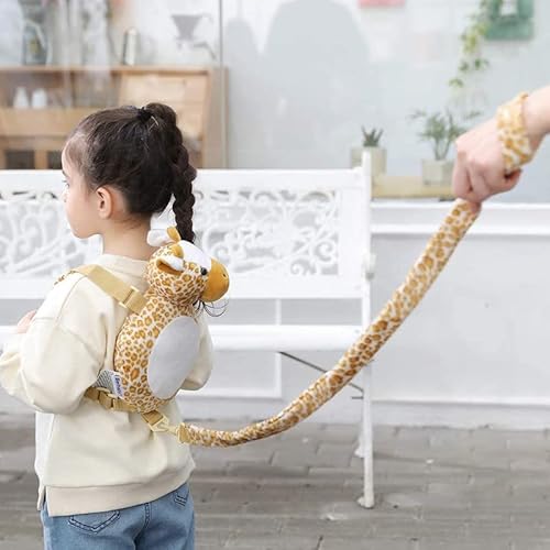 WARL Zainetto anti-mini giraffa per neonati - Zaini da viaggio piccoli gialli con guinzaglio di sicurezza e peluche - Zaini per bambini, Marrone, S