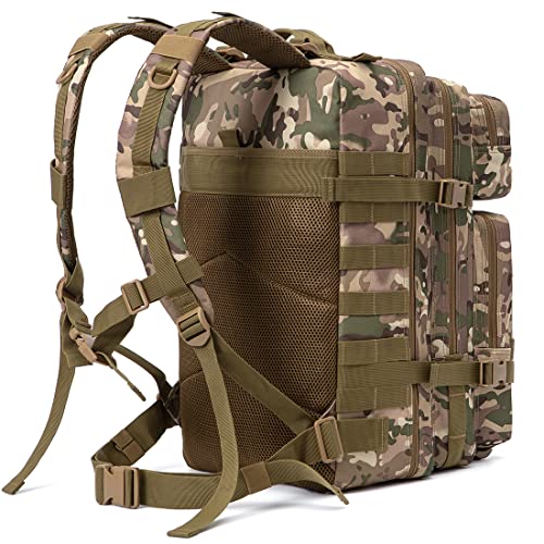 lo spazio di cui hai bisogno: questo zaino tattico militare circa dimensioni: 45cm x 33cm x 29cm dimensioni e capacità di 45l dimensioni adatte, questo zaino ha spazio per tutte le tue attrezzature essenziali.Grandi scomparti interni di stoccaggio multistrato possono ospitare un sacco di attrezzature all'aperto, e anche soddisfare le tue esigenze di viaggio quotidiano.Adatto per il fitness, viaggi all'aperto, escursioni e altre attività all'aperto.