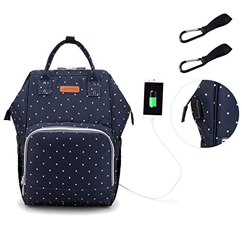 Zaini USB da Viaggio Mamma neonato Impermeabile e resistente ai graffi tessuto Oxford 18 Pocket 200g Grande Capacità Zaino Orange (27x15x42cm, Punto blu dell'onda)