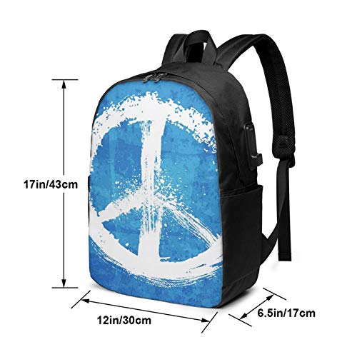 Zaino Antifurto con Porta Usb, Simbolo della pace nel mondo Zaino per Pc Computer Portatile 17 Pollici, Zaino per Laptop Da Uomo Donna per Scuola, Business, Viaggio