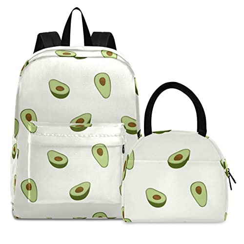 Zaino per bambini Zaino Scuola con Borsa per il Pranzo Acquerello Scheletro Prescolare Asilo Studente BookBag Set, Stampa con motivo avocado, Zaini Daypack