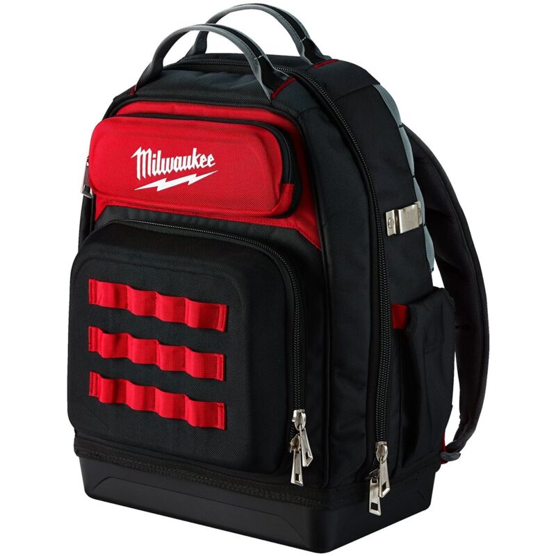Milwaukee - Zaino da cantiere Premium a 48 tasche Realizzato in tessuto balistico 1680 D con cerniere metalliche per impieghi gravosi per una maggiore durata. La base rigida modellata mantiene lo zaino in posizione verticale e riduce l'ingresso di sporco e acqua. Cinghie pettorali regolabili e cinghie di fissaggio per borse a rotelle. La bretella imbottita e traspirante distribuisce il peso in modo uniforme per un maggiore comfort e prestazioni sul lavoro. 48 tasche in tutto, comprese 2 tasche rigide per proteggere le apparecchiature elettroniche dagli urti. Zaino per uno stoccaggio organizzato Specifiche tecniche: Numero di tasche: 48 Dimensioni (mm): 240 x 457 x 518