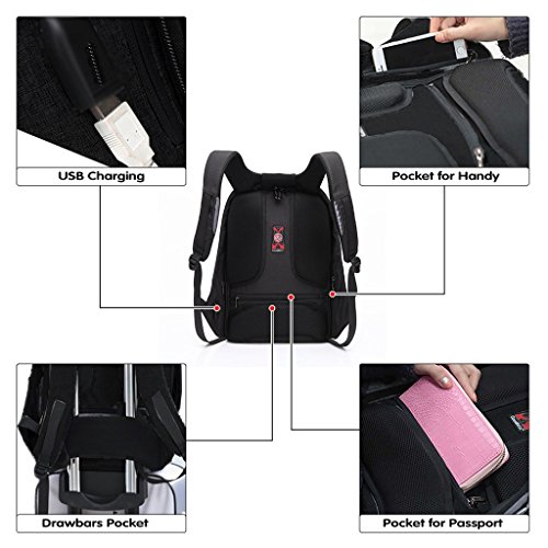 Zaino per computer con design anti furto, con porta USB di ricarica, borsa da viaggio impermeabile con scomparto interno, per uomini e donne, Black