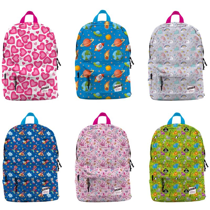Zaino Kids design 865 Scatto. - Codice articolo 865 - Zaino in tessuto - Tasca centrale e anteriore - Spallacci e schienale imbottiti - Prodotto di alta qualità - Ideale per la scuola e per il tempo libero - Fantasie e colori assortiti - Dimensioni: 42x30x12 cm ATTENZIONE! Questo prodotto viene distribuito dal produttore in modelli e/o colori assortiti in modo del tutto casuale. Non ci è possibile proporre un modello e/o un colore in particolare. Confermando l' ordine, riceverete uno dei modelli indicati sull' immagine in funzione dello stock disponibile. Vi ringraziamo per la comprensione. IL PREZZO INDICATO VALE PER UN SINGOLO PRODOTTO.