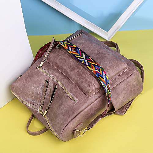 Zaino da donna in pelle PU da donna casual borsa a tracolla zaino da viaggio con cinturino colorato - rosa - Large