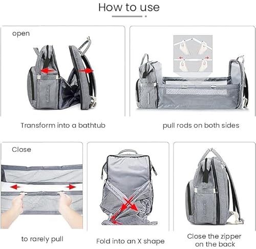 Zaino Fasciatoio con Funzione Lettino - 6 Scomparti - Ampio Spazio di Stoccaggio - Borsa Fasciatoio con Tappetino - Delicato sulla Pelle - Montaggio e Smontaggio Veloce - Facile da Pulire