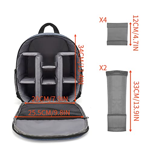 【Leggero e portatile】 La dimensione del nostro zaino per fotocamera è 33x26,5x12,5 cm/ 13x10,43x4,92 pollici e il peso è 300 g. È leggero e facile da trasportare e non ti stancherà se percorri lunghe distanze nel tempo.